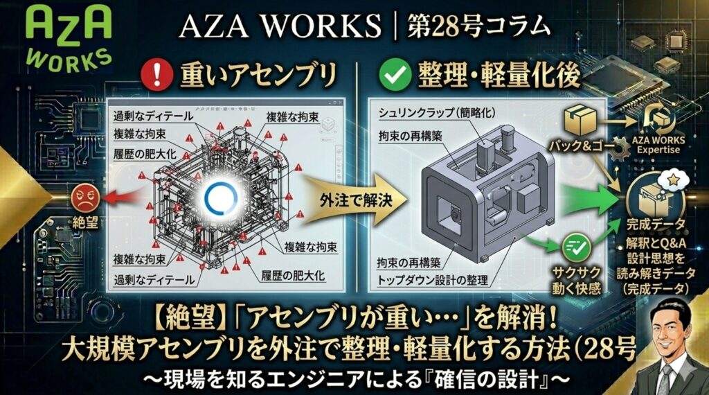 今回は、エンジニアの精神を蝕む「重いアセンブリ」を、外注リソースを活用して劇的に軽量化・整理する戦略をお話しします。